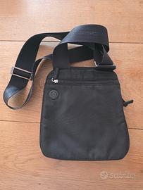 Comoda Borsa tracolla uomo nera, con rifiniture in acciaio, allargabile con apposita zip.