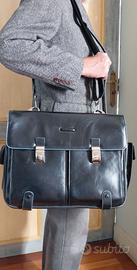 PIQUADRO cartella da lavoro porta pc e ipad, colore nero, numero soffietti 2, tracolla e manico sganciabili, porta carte di credito.