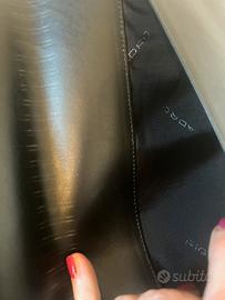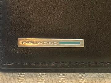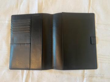 Piquadro custodia per agenda / organizer in pelle colore nero. Molti scomparti interni, porta quaderno, porta tessere, porta penna. Guardando in controluce presenta dei segni dovuti a fogli scritti appoggiati in superficie. Misure: larghezza 18 cm, altezza 24 cm.