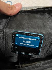 Borsello tracolla in pelle nera, inserti blu, utilizzato poco, completo di sacca originale, dimensioni 300 mm x 250 mm; adatto anche per contenere IPAD/TABLET 10"..