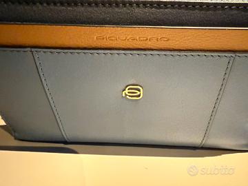 N.1 portafoglio donna modello circle colore blu, vera pelle L 14 x H 9 x P 3