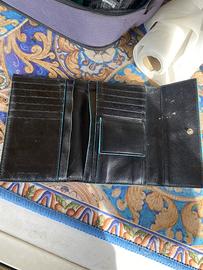 Piquadro portafoglio Donna in pelle colore nero con rifiniture celesti ottimo stato aprendolo a molti scomparti per mettere i vostri documenti e carte d credito a uno scomparto per le banconote e uno per le monete