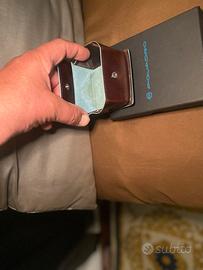 Piquadro portamonete in pelle colore testa di moro con il dentro caleste completo di scatola