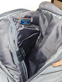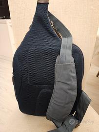 Si vende zaino monospalla della Piquadro in buone condizioni colore blu, realizzato in tessuto e pelle.