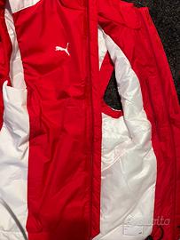 Vendo Due piumini smanicate della Puma con sponsor Ferrari competizioni GT colore rosso e bianco con due tasche anteriori e una interna Misura 42 uno e l’altro 44 /46 Mai usati