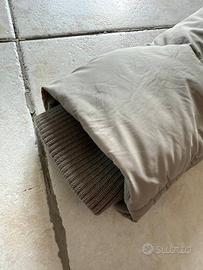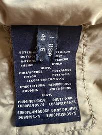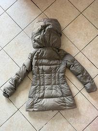 Piumino donna con cappuccio restringibile trasformabile in collo. Marca ADD, color tortora, taglia 44. Piccolo difetto su tasca. €40,00