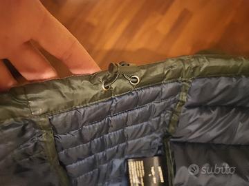 piumino 100gr Massimo Rebecchi taglia L, colore esterno verde e blu interno, 100% poliestere, con cappuccio, mai utilizzato, vendo per cambio taglia.