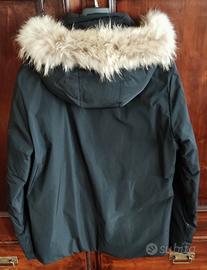 Giaccone piumino d'oca Bomboogie colore nero con collo in pelliccia usato ma in ottime condizioni sul fondo ha due culisse per regolare la larghezza