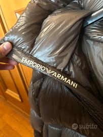 Piumino originale Emporio Armani, modello corto con cappuccio e chiusura frontale con zip. Realizzato in 100% poliamide con finitura leggermente lucida, dal look moderno e sportivo.