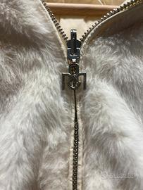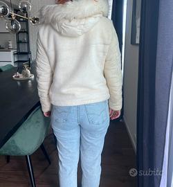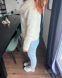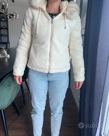 Piumino corto color panna non troppo pesante adatto per l’autunno double face. Eco pelliccia e piumino con cappuccio removibile. Taglia S - 42