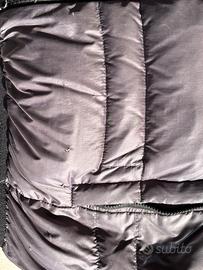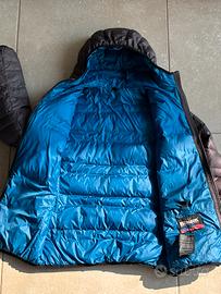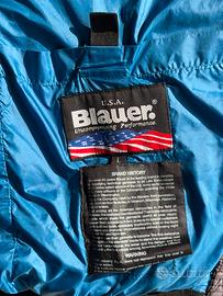 Piumino pesante di Blauer grigio con interno a contrasto in blu elettrico. Cappuccio, Fondo e Polsini elasticizzati; chiusura frontale con zip; due tasche anteriori e una tasca interna. Usato con alcuni segni di usura sul fondo del giubbino (dettaglio nelle ultime due foto)