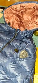 vendo per cambio taglia caldo piumino Blauer con cappuccio, colore blu notte, interno rosa antico.
