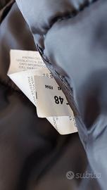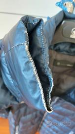 piumino blu, presenta usura come evidenziato in foto, nei bordi manica, sul fronte, nei bordi inferiori, collo e gomiti taglia 48