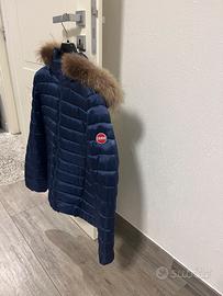 Piumino corto blu con cappuccio e pelo. Comprato e mai messo, nuovo!! taglia M ma veste abbondante