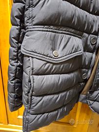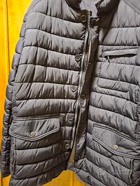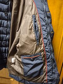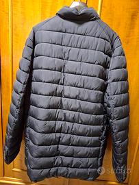 Morbido giaccone piumino blu da uomo, in poliestere, con allacciatura con zip e bottoni, 5 tasche esterne e 3 taschini interni. Taglia xl. In perfette condizioni.