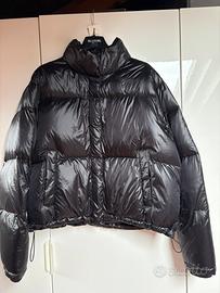 Piumino corto con coulisse effetto lucido nero. Taglia italiana 42