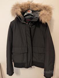 Piumino nero donna Canadian, stile bomber con cappuccio taglia S(42), pelo rimovibile, 50% piuma e 50% piumino. Come nuovo