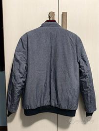 Vendo piumino bomber da uomo, marca Tommy Hilfiger, double face-doppio colore (da un lato blu scuro, dall’altro blu chiaro con elastici blu scuri), senza cappuccio, di taglia L, vestibilità normale adatta a chi indossa solitamente L.