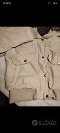 bellissimo piumino bomber con cappuccio imbottito con pellicciotto ..color beige chiaro.. è praticamente perfetto se non per un minuscolo buchino sulla manica , vedere ultima foto , per il resto è in condizioni perfette.. ovviamente UNISEX..super caldo e confortevole 💕