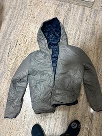 Vendo piumino come da foto piumino della Bomboogie colore blu e grigio double fast come da foto Presente strappo come da foto sul logo della colorazione Blu