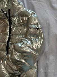 Piumino invernale originale Champion Taglia M colore grigio argento Indossato pochissimo perche per me troppo piccolo