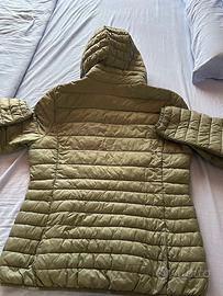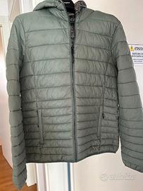 Piumino CMP colore verde con cappuccio che può essere staccato, taglia XL. Morbida e leggera.