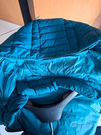 Piumino CMP in ottimo stato, usato pochissime volte. Colore blu/teal, imbottitura trapuntata, cappuccio rimovibile. Leggero ma caldo, ideale per mezza stagione o montagna
