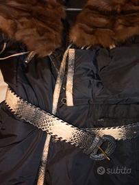 Bellissimo piumino da donna con collo in pelliccia, cintura e profilature in rettile. Taglia 46 Nuovo mai usato. vera occasione.