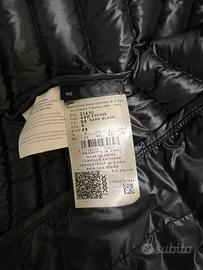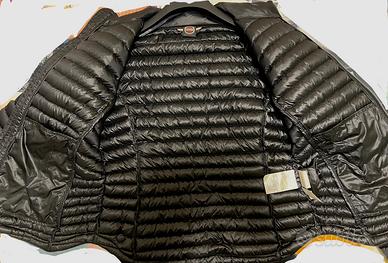Indossato solo un anno, è imbottito in piuma naturale ed è in tessuto 100% riciclato,idrorepellente e con effetto cangiante.
