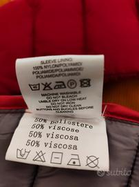 Piumino donna. Colore rosso, interno grigio. Veste piccolo.