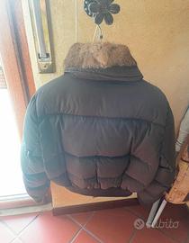 piumino corto con collo in pelliccia indossato una volta taglia L colore verde