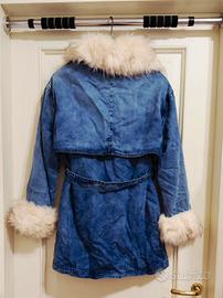 giacchetto con piumino interno, rimovibile con bottoni per adattarlo a tutte le stagioni: primavera/autunno senza piumino si sta bene e d'inverno tiene caldo. Pelliccia sintetica su girocollo e polsi rimovibili con bottoncini, chiusura sia zip che bottoni, tasche davanti e laccio in vita. Indossato poche volte, come nuovo. Taglia 42