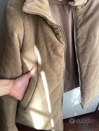 piumino imbottito, colore beige/ capuccino. Esterno in velluto a coste, con collo alto. Marca subdued, taglia M