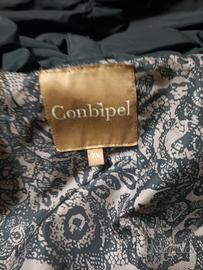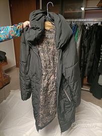Piumino Conbipel da donna taglia XL, colore nero lunghezza al ginocchio, con cappuccio, chiusura con cerniera e bottoni, tasche laterali con cerniera. Ben tenuto, unico difetto facilmente risolvibile, cucitura interna scucita (visibile ultima foto).