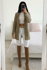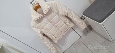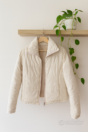 Questo giacchetto imbottito è un mix ideale di comfort e stile. Colore: panna tono caldo, versatile e luminoso Taglio: corto, con vestibilità regolare Dettagli: imbottitura trapuntata a righe orizzontali, collo alto avvolgente, zip frontale leggermente rosata che richiama la scritta sul retro Retro: ricamo “LONDON” in rosa, per un tocco urban e originale Condizioni: buone usato molto poco Taglia: etichetta taglia L Misura da ascella ad ascella 44 cm Ideale da abbinare a jeans, pantaloni cargo o gonne midi per un look casual ma curato. Caldo e leggero. SOLO a chi acquista questo piumino, alla cifra richiesta in annuncio e non a proposte di prezzo inferiori, viene ceduto in omaggio questo cardigan beige firmato DIVIDED by H&M – taglia M (EU 40) in maglia grossa beige chiaro, modello aperto. Realizzato con filato spesso, presenta una lavorazione a coste verticali che dona struttura e comfort. Lunghezza media fino ai fianchi, perfetto da sovrapporre a crop top o maglie aderenti. Maniche lunghe con polsini a costine, finiture curate e stile cozy-chic ideale per la stagione fredda. € 35