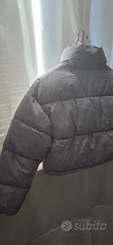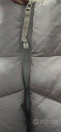 Piumino corto color grigio con cerniera frontale, laccetti nascosti per chiudere a piacimento sui fianchi, tasche laterali, collo imbottito. Mai usato.