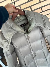 Piumino donna PATRIZIA PEPE lungo, taglia 44, vestibilita fit, con cappuccio apribile con zip, con elastico a scomparsa in vita per regolare la corconferenza. Ottimo stato, non presenta imperfezioni. Piumino 100% d’anatra.