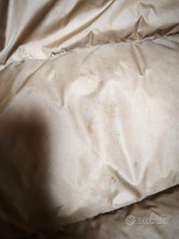 ATTENZIONE: compravendita tra privati, non verranno accettati resi. Vendo piumino Dolce & Gabbana 100% originale, taglia L. Il capo è strutturalmente perfetto e caldissimo. ATTENZIONE: Presenta delle macchie [in alto a sinistra (vedi foto); una vicina al bottone, in basso a destra; una sul braccio destro sotto il bicipite. Entrambe facciata marrone; Facciata caffellatte: piccola macchie di umido in basse. Sono molto discrete e, data la natura del tessuto tecnico, trattabili ed eliminabili in lavanderia specializzata]. Lo svendo a soli 59€ (prezzo non trattabile) perché non ho tempo di portarlo in lavanderia professionale. Per chi ha voglia di dargli una rinfrescata, è l'affare della vita: un capo da oltre 800€ a meno del prezzo di un piumino di sottomarca.