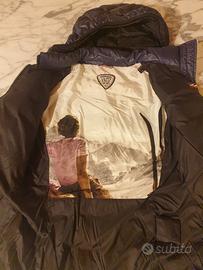 Giubotto in vero piumino d'oca, come nuovo, marchio Rossignol, in color blu con interno decorato.