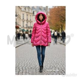PIUMINO V LAB IN VERA PIUMA ROSA ACCESO CHE ILLUMINA L INVERNO! CHEVRON ELEGANTI CAPPUCCIO OVERSIZE E ZIP ORO. CALDO LEGGERO E SUPER CHIC. TAGLIA 40. PERFETTO PER CHI AMA OSARE CON STILE!