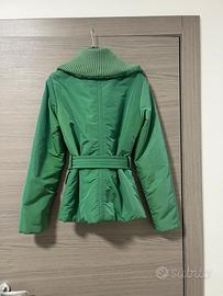Piumino Cerruti, in ottime condizioni. Indossato una volta, non ha nessun difetto. Lunghezza 63 cm. Spalla a spalla , 39 cm. Ascella ad ascella 46 cm. Manica 63 cm. Con collo ampio e caldo . Chiudibile con bottoni, colore verde . Chiusura a zip a scomparsa . Due tasche con bottoni a pressione e due tasche con zip , cintura in vita , che si puo’ regolare in base alla larghezza.
