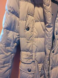piumino da donna, imbottitura di vero piumino d'oca, con cerniera e bottoni, completo di cintura.