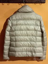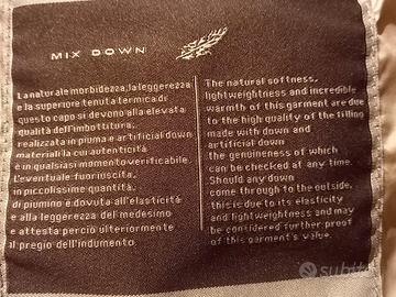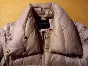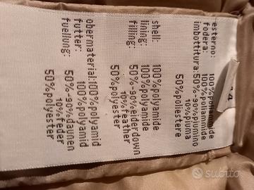 piumino da donna, colore beige chiaro, con due tasche. imbottitura: 50% piumino (90% piumino, 10% piuma) 50% poliestere collo staccabile marchio: lanificio di Tollegno taglia: 44