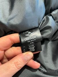 Piumino uomo marca Dekker in vera piuma d’oca. Taglia S, colore blú. Nuovo, mai usato, ancora con etichetta originale.