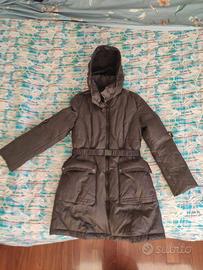 Caldissimo piumino marca Nineteen Seventy colore terra in perfette condizioni, taglia 46 ( misure ascelle 104, vita 94, fianchi 116 ), con cappuccio inserito nel collo.