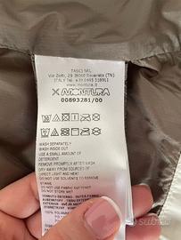 Piumino donna bianco Montura Tg. S con imbottitura in piuma d'anatra. Tessuto esterno in nylon. Due tasche esterne per le mani con zip, due tasche interne: una con zip e l’altra con velcro, polsini elasticizzati.