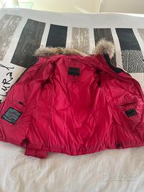 Bellissimo piumino donna rosso della Blauer con cappuccio in pelliccia.