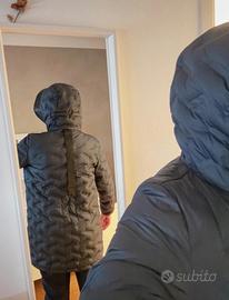 In ottime condizioni, vendo per inutilizzo, usato poco. Piumino lungo sopra il ginocchio, molto caldo, colore esterno blu, interno giallo fluo.