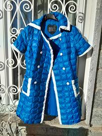 Vendo questo particolare e stiloso piumino trapuntato a maniche corte, perfetto per la mezza stagione o per essere indossato sopra una maglia a contrasto. Il colore è un blu royal vivace e brillante.