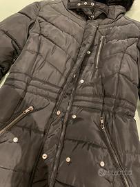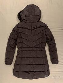 Piumino da donna nero Brugi. Impermeabile, anche il cappuccio (all’interno pelo, all’esterno impermeabile). Si chiude con cerniera e con bottoni e in vita si può regolare tramite il laccio interno (vedi foto 10). Indossato forse due volte perché la taglia non era giusta per me.